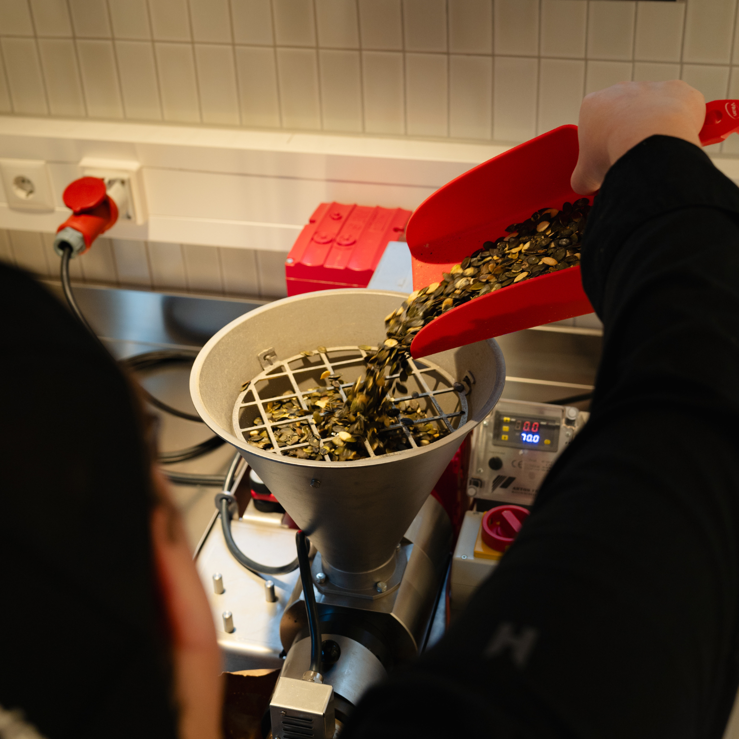 Doch es gibt auch Rohwaren, die wir in unserer Ölmühle verarbeiten, die nicht in Deutschland wachsen. Kaffeebohnen für unser Kaffeeöl beispielsweise und andere Gewürze, aus denen unsere besondere Kreationen entstehen. In diesen Fällen arbeiten wir mit anderen Hamburger Manufakturen und ausgewählten Partnern zusammen und stellen sicher, dass die Wertschöpfung in unserer Region bleibt.